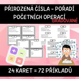 Samokontrolovací karty zaměřené na všechny početní operace s přirozenými čísly a závorkami. Umožňují žákům procvičovat