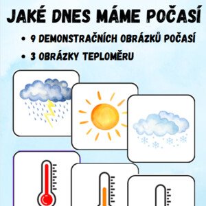 Materiál je vhodný pro děti předškolního věku (3-6 let) Obsah: 9 demonstračních obrázků počasí - slunečno, polojasno