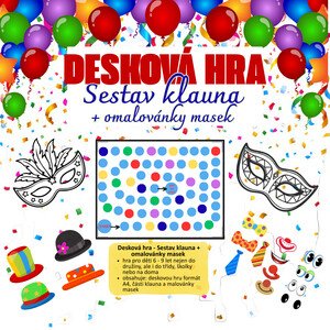 DESKOVÁ HRA - SESTAV KLAUNA + OMALOVÁNKY MASEK Co vše obsahuje: ✅ hrací plán formátu A4 ✅ 5 listů A4 s částmi klauna ✅ 3