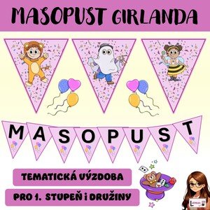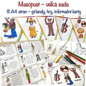 Soubor obsahuje 19 karet s masopustními obrázky a jejich názvy. Děti mají za úkol zakroužkovat smazací fixou písmena tak