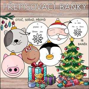 Materiál obsahuje 18 kartiček ve tvaru vánočních baněk, pomocí kterých si žáci procvičují správné řazení slov ve větě a