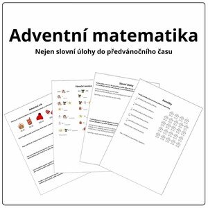 Tematické slovní úlohy o adventních trzích a pečení cukroví. Úloha se zlomky a perníčky, rovnice s obrázky. Když v