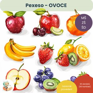 Materiál Pexeso - ovoce je připravený pro využití jak v MŠ, ZŠ, ale také do ŠD. Kartičky lze využít nejen pro klasické