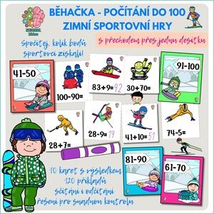 Zimní sportovní hry vrcholí a každý výkon přináší body! Děti počítají, kolik bodů sportovci získali, a běhají s