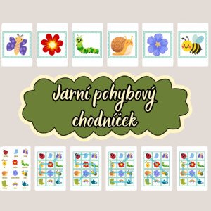 Co v materiálu najdete: pohybový chodníček (jednotlivé obrázky se rozmístí podle předlohy na zem a děti dle šablon