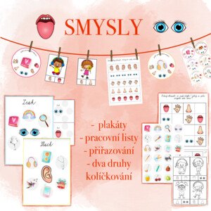 Tento soubor obsahuje aktivity se smysly. Najdete zde plakáty, pracovní listy (barevně i černobíle), přiřazování a dva druhy kolíčkování.