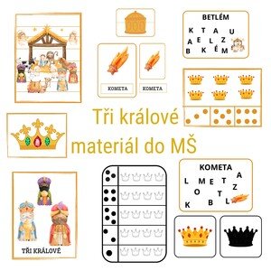 ⭐ Obsah materiálu – Tři králové demonstrační kartičky skládací obrázky (z více i ze dvou částí) zraková orientace