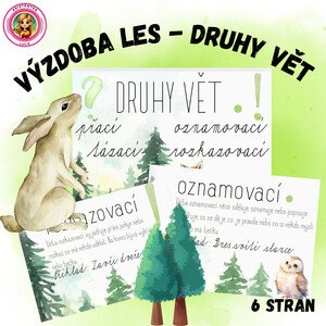 Materiál slouží jako výzdoba třídy s tematikou lesa a druhů vět. Obsahuje přehledné plakáty s názvy, vysvětlením a