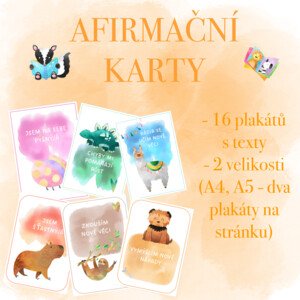 Tento soubor obsahuje 16 afirmačních obrázkových karet s krátkými texty. Karty slouží jako výzdoba do třídy a podpora