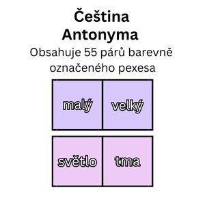 Pexeso – Opačná slova (antonyma) 🔄 Zábavné vzdělávací pexeso, se kterým si děti procvičí slova s opačným významem! Najdi