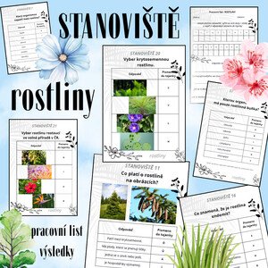 Stanoviště - rostliny 23 stanovišť děti řeší úkoly na jednotlivých stanovištích výsledky zapisují do pracovního listu