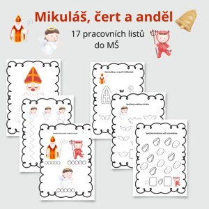 Soubor obsahuje 17 autorských pracovních listů pro děti v MŠ na téma Mikuláš, čert a anděl 👼😈🎅.