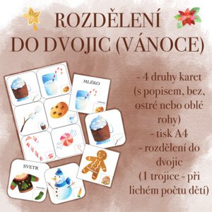 Tento soubor obsahuje karty s vánoční tematikou na rozdělování dětí do dvojic při různých aktivitách (v případě lichého