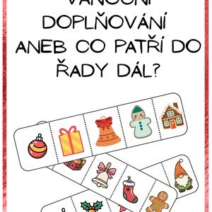 Tento materiál obsahuje 20 kartiček s řadou obrázků. V každé řadě chybí na konci jeden obrázek a úkolem dětí je doplnit