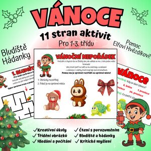 Obsah materiálu: 36 demonstračních kartiček s objekty z prostředí Vánoc (pro oboustranný tisk – při volbě tisku zvolte