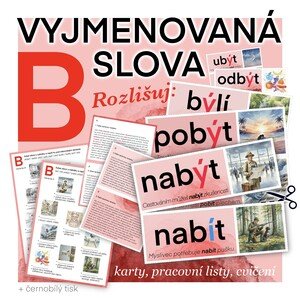 Soubor didaktických materiálů zaměřený na rozlišování vyjmenovaných slov po B, která se často zaměňují, obsahuje: • 20