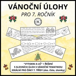 Materiál obsahuje pracovní list - 5 slovních úloh s vánoční tematikou pro žáky 7. ročníku. Součástí jsou výsledky všech