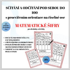 Materiál obsahuje 26 početních šifer. 13 šifer se zaměřuje na sčítání do 100 pod sebou, 13 na odčítání do 100 pod sebou