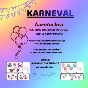 🎉KARNEVAL🎉 karetní hra (14 stran) Tematická karetní hra s karnevalovým motivem, zaměřená na procvičení barev, rozvoj