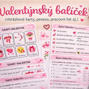 Valentýnský balíček se zaměřuje na tématiku svátku Svatého Valentýna ve francouzštině na úr. A2-B1. Obsahuje obrázkové