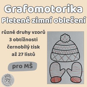 Grafomotorika Pletené zimní oblečení je soubor pracovních listů na procvičování grafomotoriky. Obsahuje obrázky čepic