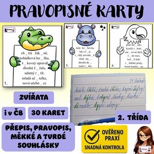 Cílem materiálu je procvičit si pravopis po měkkých a tvrdých souhláskách. Jedná se o soubor 30 kartiček, kde na každém