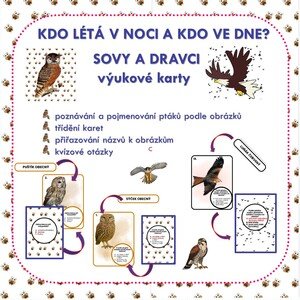 Materiál seznamuje žáky s dravci a sovami zábavnou a názornou formou. Prostřednictvím oboustranných karet s obrázky