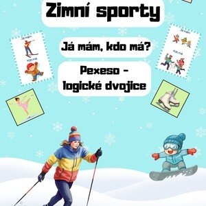 Soubor obsahuje 24 kartiček na hru Já mám, kdo má? s tématem zimních sportů. Hra je určena pro děti v mateřské škole a