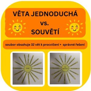Výukový materiál je v barevném i černobílém provedení. Slouží k procvičení učiva věta jednoduchá vs. souvětí. Pro delší