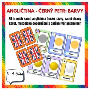 Karetní hra do hodin angličtiny, kterou si můžou žáci řídit sami. Materiál na motivy známé karetní hry Černý Petr. V