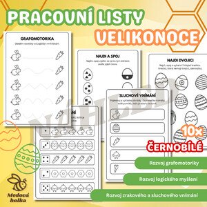S ada obsahuje celkem 1 0 černobílých pracovních listů na téma Velikonoce , které jsou určeny především pro děti