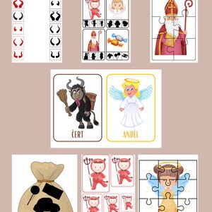 Krásný den, nabízím materiál k tématu čert, anděl, Mikuláš. Soubor obsahuje demonstrační obrázky (10 ks), kartičky k
