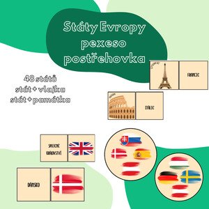 Materiál obsahuje: pexeso - stát + vlajka pexeso - stát + památka postřehovku - vlajky řešení Materiál je vhodný pro