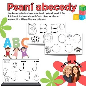 Psaní písmen pro nejmenší děti obsahuje i obrázky začínajících na dané písmeno, aby si je děti lépe přiřazovaly. Obrázky