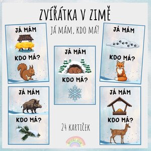 Soubor obsahuje 24 dvojic kartiček se zimní tematikou. Úkolem dětí je přiřadit ke každému obrázku jeho odpovídající