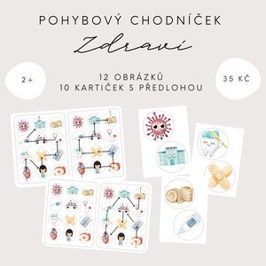 Děti mají k dispozici obrázkové karty rozložené na zemi, které tvoří pohybový chodníček. Podle kartičky s vyznačenou