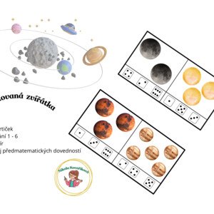 Soubor obsahuje 10 karet s tematikou Vesmír na procvičení předmatematických dovedností a to konkrétně počítání 1-6