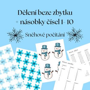 K čemu materiál slouží? Materiál obsahuje 2 typy úloh: a) příklady na dělení beze zbytku - k jednotlivým sněhulákům se