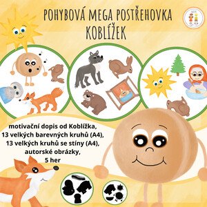 Koblížek - Pohybová mega postřehovka Materiál obsahuje: motivační dopis, 13 velkých barevných kruhů (A4), 13 velkých