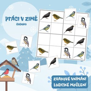 V souboru naleznete: 20 velkých karet se sudoku tabulkami 140 malých kartiček s obrázky ptáků. Prostřednictvím této