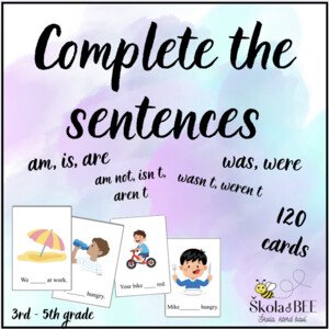 Soubor obsahuje 120 kartiček zaměřených na procvičování slovesa to be v přítomném i minulém čase. Žáci doplňují správné