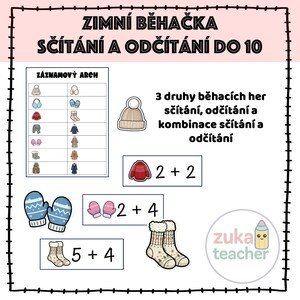 Materiál obsahuje 3 běhací hry. Na sčítání, odčítání a kombinace sčítání a odčítání. Kartičky s oblečením učitel