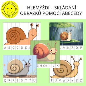 Materiál obsahuje skládačky obrázků pěti hlemýžďů. Vybrané stránky se skládačkami vytiskněte. Skládačky rozstříhejte