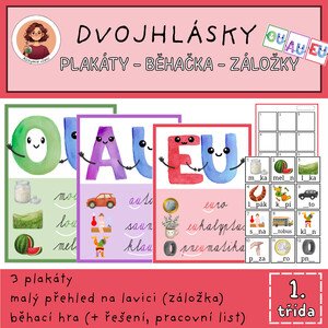 Minisada k dvojhláskám zahrnuje plakáty jako vizuální oporu, praktickou pomůcku na lavici a učení v pohybu :-). Co
