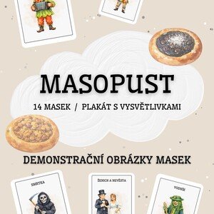 Materiál je určen pro děti v MŠ i žáky na ZŠ. Obsahuje: 14 karet s demonstračními obrázky tradičních masek masopustu