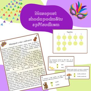 Materiál obsahuje: Kartičku s textem o slavení masopustu u nás a v zahraničí Kartičky na doplňování I, Y Kartičku na