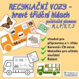 Počáteční písmena - M, L, P, S, T, J (vyvození písmen). Materiál obsahuje sady obrázků tematicky rozdělených podle