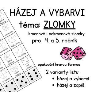 Materiál obsahuje dva pracovní listy, které se zaměřují na procvičování zlomků formou hry s kostkou. Pro rychlejší žáky