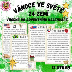 Materiál „Vánoce ve světě“ představuje přehled 24 různých zemí, ve kterých se Vánoce slaví odlišnými způsoby. Každá