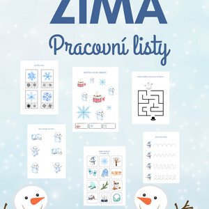 Sada obsahuje 3 různé zimní pracovní listy s aktivitami pro děti přibližně 3–7 let. Každý list je připraven ve dvou